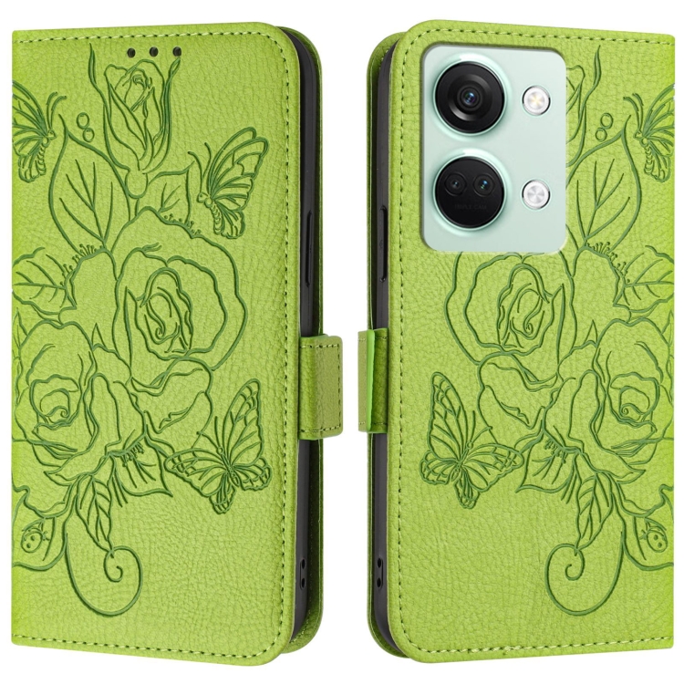 Funda de Cuero Antirrobo RFID para OnePlus Ace 2V y Nord 3 con Relieve (Verde)