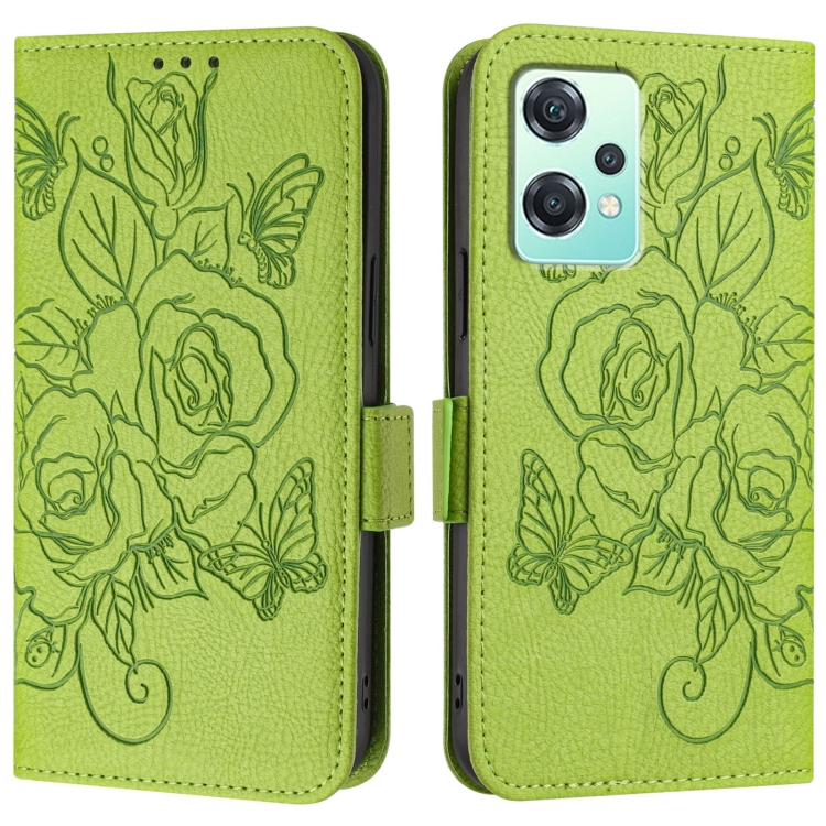 Funda de Cuero Antirrobo RFID para OnePlus Nord 2 Lite con Relieve (Verde)