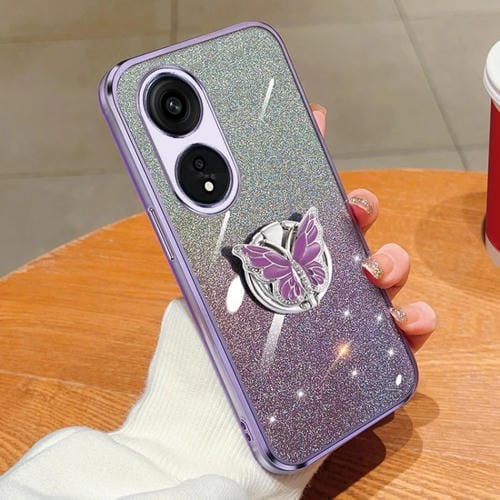 Para Oppo A1 Pro Estuche para Teléfono de TPU con Soporte de Mariposa con Brillo Degradado Plateado (Púrpura)