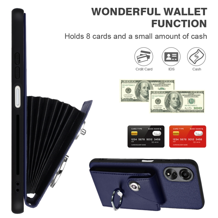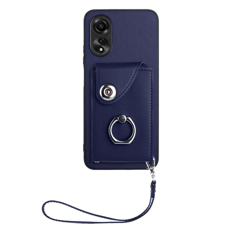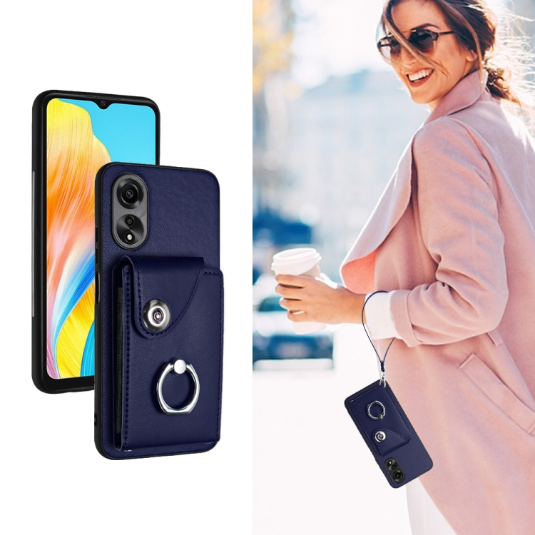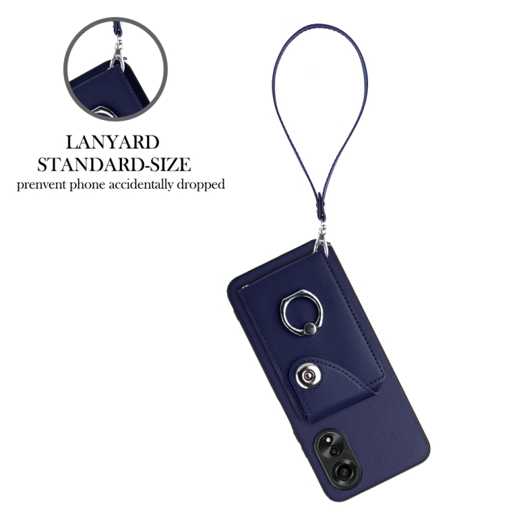 Para Oppo A17 Global Organ Card Bag Ring Holder Pu Funda para Teléfono con Cordón (Azul)