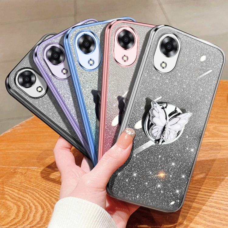 Para Oppo A17K Estuche para Teléfono de TPU con Soporte de Mariposa con Brillo Degradado Plateado (Púrpura)
