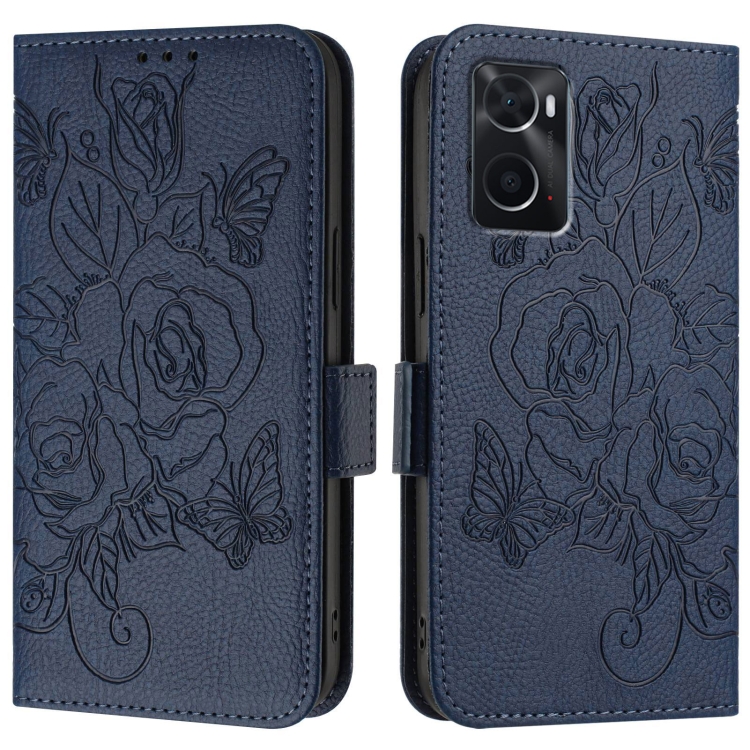 Para Oppo A36 4G / A76 4G / A96 4G / K10 4G Funda de Teléfono de Cuero Antirrobo Rfid con Relieve Rosa (Azul Oscuro)