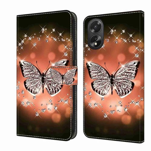 Para Oppo A38 4G Crystal 3D Funda Protectora de Cuero para Teléfono a Prueba de Golpes (Mariposa de Cristal)
