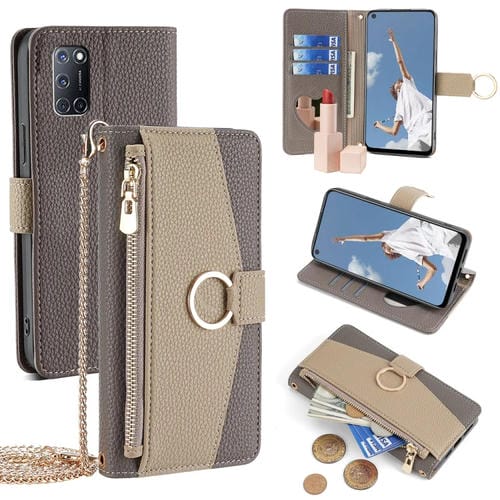 Para Oppo A52 Crossbody Litchi Texture Funda de Cuero para Teléfono (Gris)