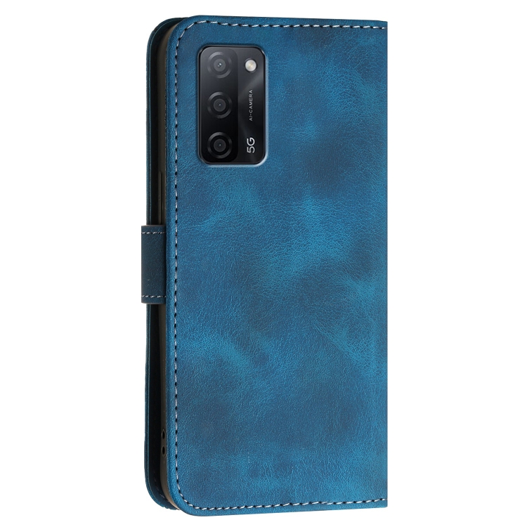 Para Oppo A55 5G / A53S 5G Yx0080 Funda para Teléfono de Cuero con Tapa y Patrón En Relieve de Mariposa En Cuadrícula con Cordón (Azul Oscuro)