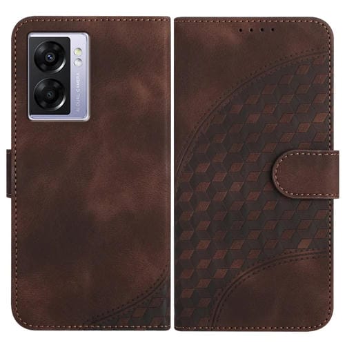 Para Oppo A57 5G / A77 5G / A57 4G Global Yx0060 Funda de Cuero para Teléfono con Relieve y Cabeza de Elefante con Cordón (Café)