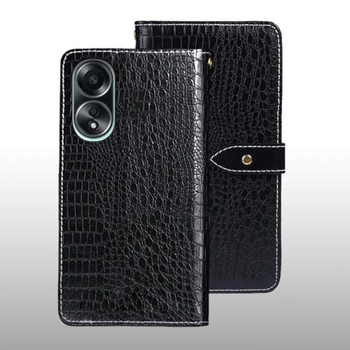 Para Oppo A58 4G Funda para Teléfono de Cuero con Textura de Cocodrilo Foreign Idewei (Negro)