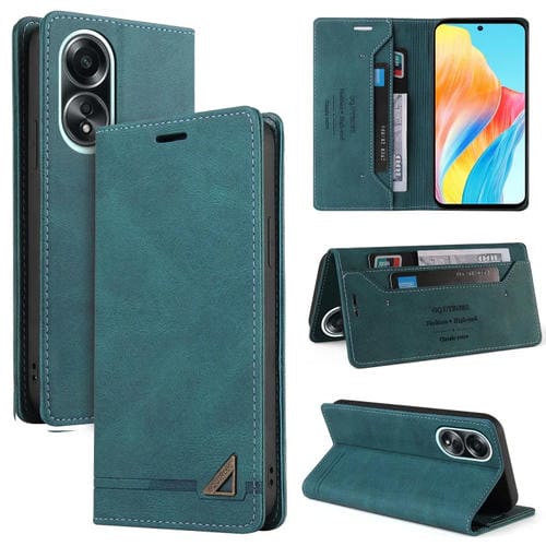 Para Oppo A58 4G Skin Feel Funda de Cuero con Tapa Horizontal con Cepillo Antirrobo y Soporte (Azul)