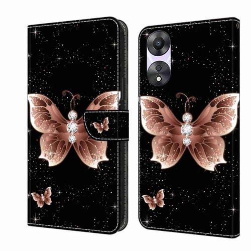 Para Oppo A58 5G Crystal 3D Funda Protectora de Cuero para Teléfono a Prueba de Golpes (Mariposa de Diamante Rosa)