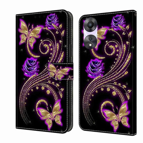 Para Oppo A58 5G Crystal 3D Funda Protectora de Cuero para Teléfono a Prueba de Golpes (Mariposa de Flor Púrpura)