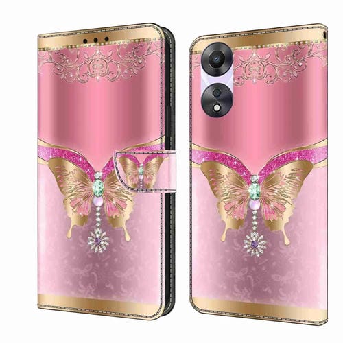 Para Oppo A58 5G Crystal 3D Funda Protectora de Cuero para Teléfono a Prueba de Golpes (Mariposa Inferior Rosa)