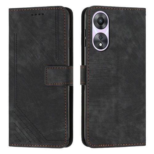 Para Oppo A58 / A78 Skin Feel Funda de Cuero para Teléfono con Patrón de Rayas y Cordón Largo (Negro)