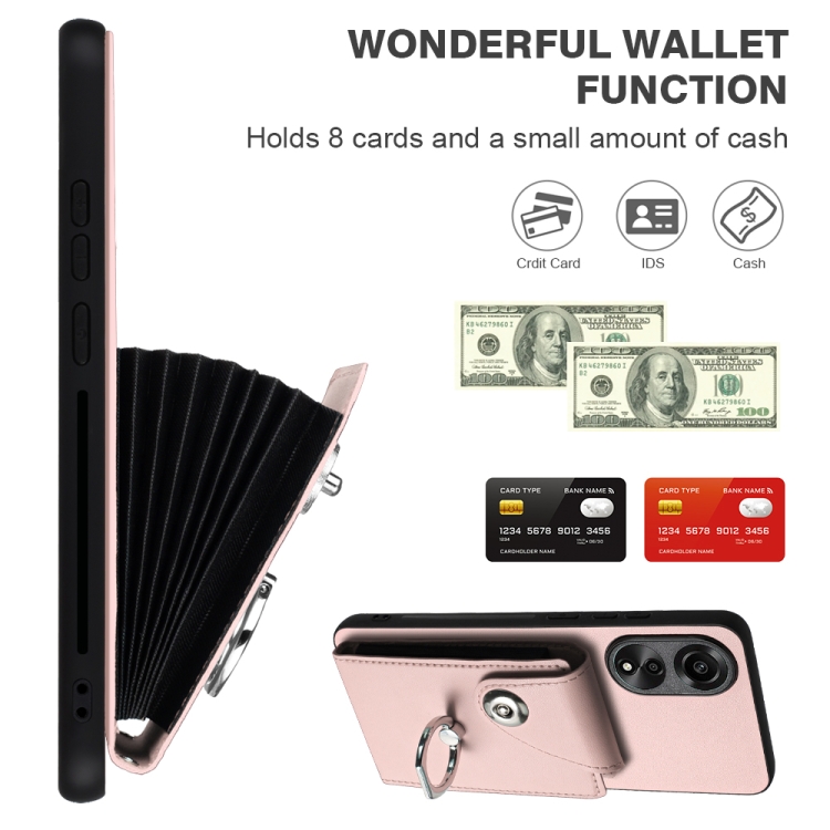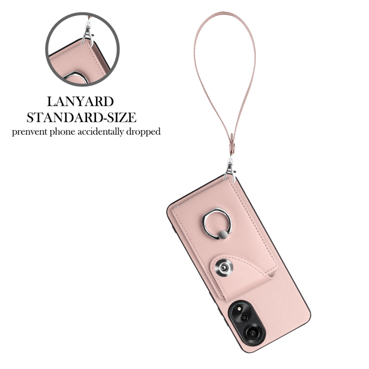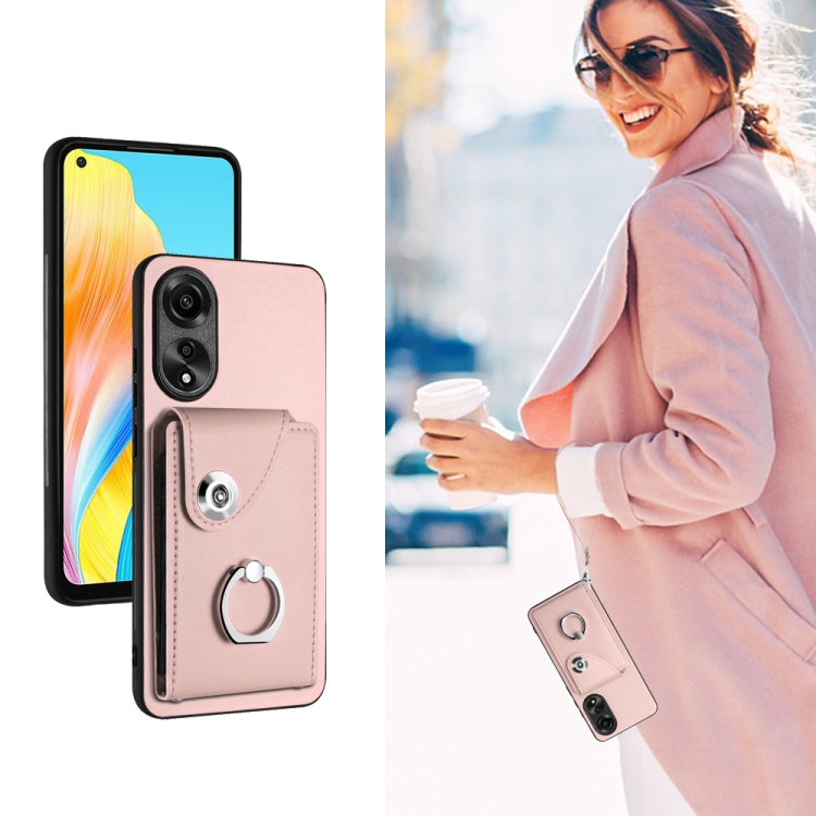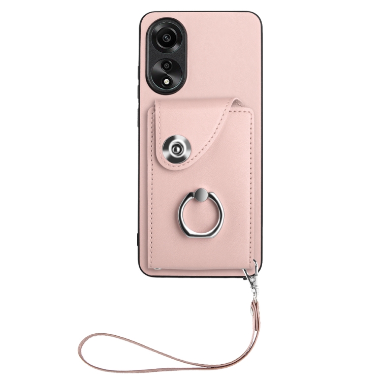 Para Oppo A78 4G Global Organ Card Bag Ring Holder Funda para Teléfono Pu con Cordón (Rosa)