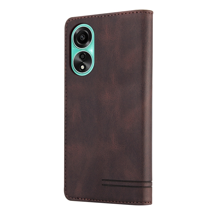 Para Oppo A78 4G Skin Feel Funda de Cuero con Tapa Horizontal con Cepillo Antirrobo y Soporte (Marrón)