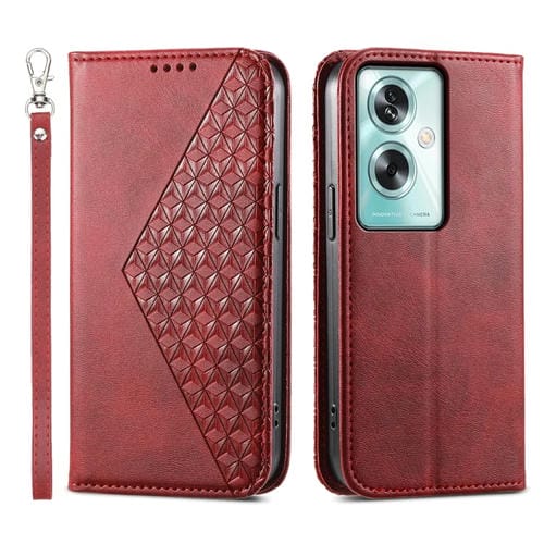 Para Oppo A79 5G Cubic Grid Calf Texture Funda de Cuero Magnética para Teléfono (Rojo)