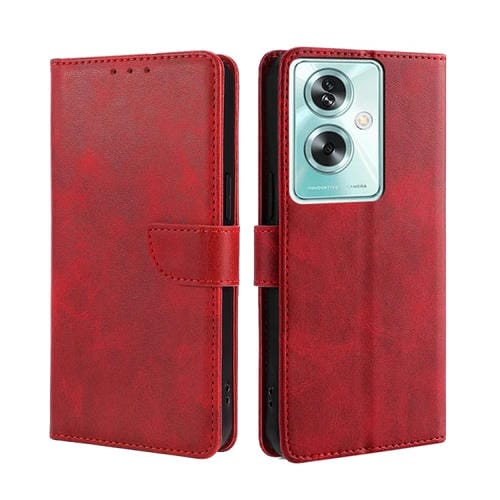 Para Oppo A79 5G Funda para Teléfono de Cuero con Tapa con Hebilla y Textura de Becerro (Rojo)