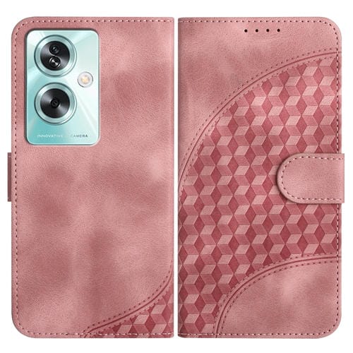 Para Oppo A79 Yx0060 Funda de Cuero para Teléfono con Relieve y Cabeza de Elefante con Cordón (Rosa)