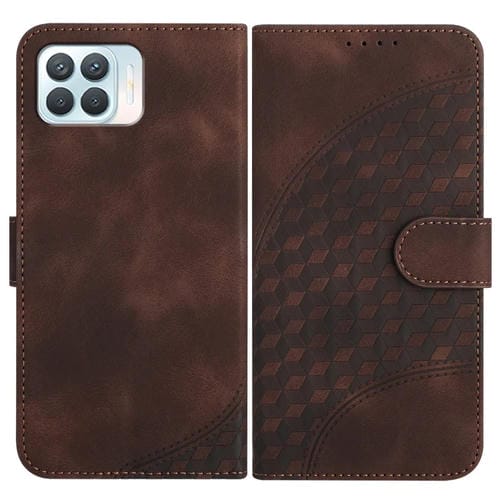 Para Oppo A93 4G / F17 Pro / Reno4 Lite / Reno4 F Yx0060 Funda de Cuero para Teléfono con Relieve y Cabeza de Elefante con Cordón (Café)