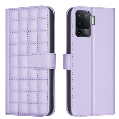 Para Oppo A94 4G / Reno5 F / F19 Pro Funda de Cuero con Textura Cuadrada (Púrpura)