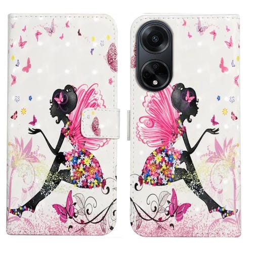 Para Oppo A98 5G Funda de Teléfono de Cuero con Dibujo 3D En Relieve al Óleo (Hada de Flores)
