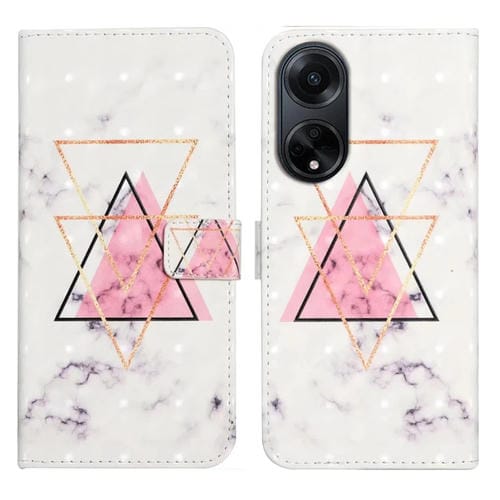 Para Oppo A98 5G Funda de Teléfono de Cuero con Dibujo 3D En Relieve al Óleo (Mármol Triangular)