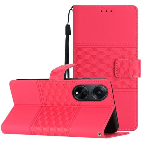 Para Oppo A98 5G Funda de Teléfono de Cuero con Sensación de Piel En Relieve de Diamante (Rojo)