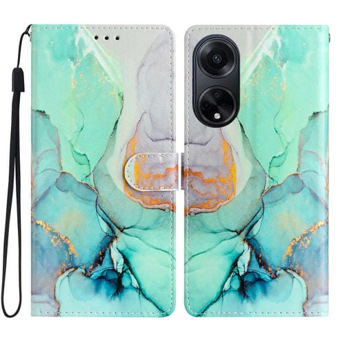 Para Oppo A98 Funda de Cuero para Teléfono con Dibujo Coloreado (Mármol Verde)