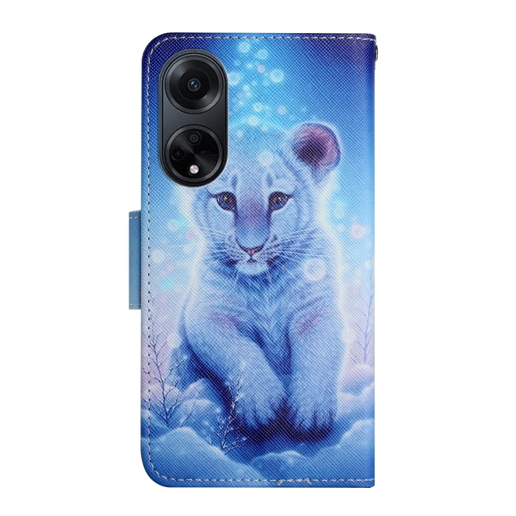 Para Oppo A98 Funda de Cuero para Teléfono con Patrón de Dibujo de Colores (Pequeño Leopardo)