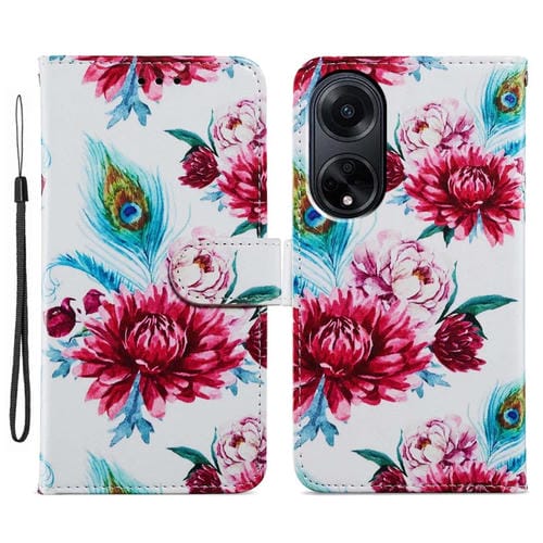 Para Oppo A98 Funda de Teléfono de Cuero con Tapa Horizontal con Patrón Pintado (Flor de Pavo Real)