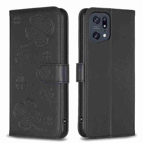 Para Oppo Find X5 Pro Funda de Cuero con Relieve de Cuatro Hojas para Teléfono (Negro)