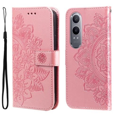 Para Oppo K12X Funda de Teléfono de Cuero con Estampado de Flores de Siete Pétalos (Oro Rosa)