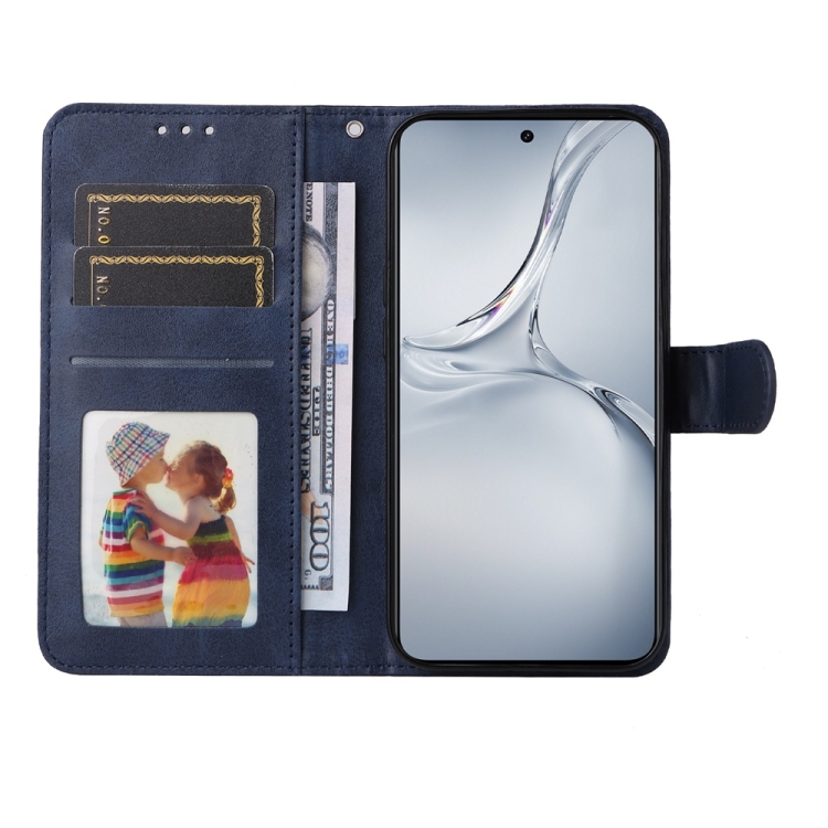 Para Oppo K12X Funda de Teléfono de Cuero con Tapa con Textura de Becerro Clásica (Azul)
