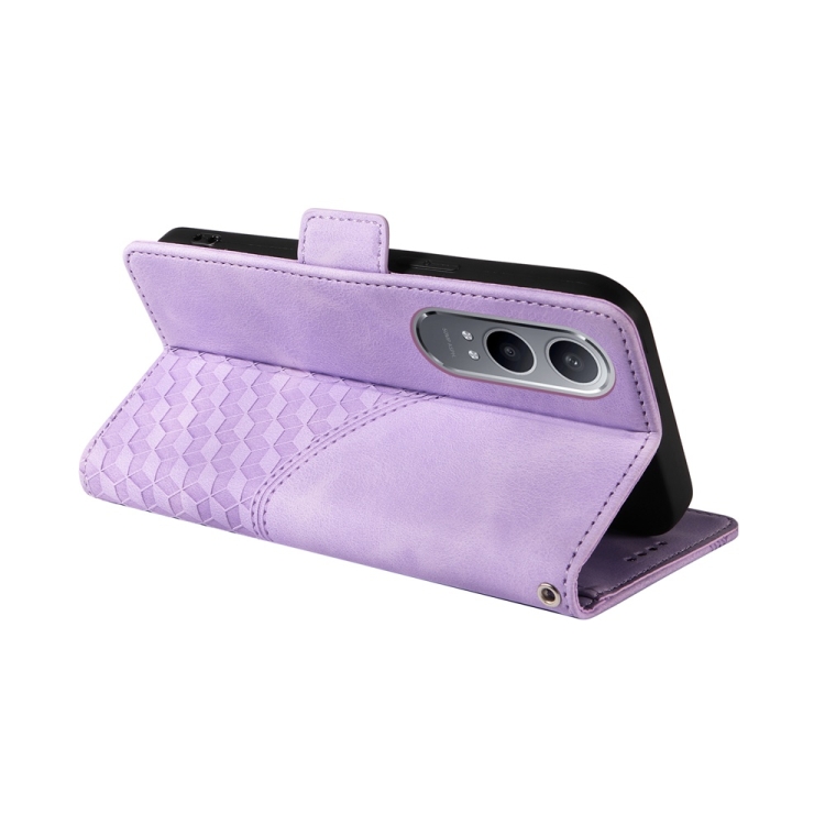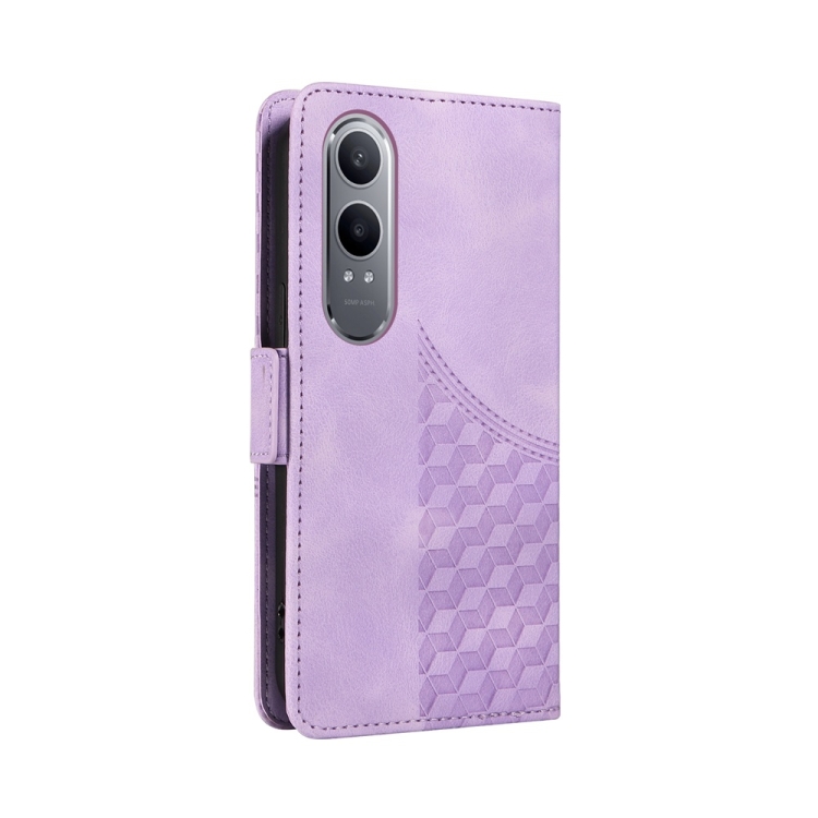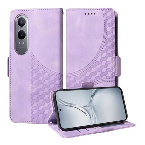 Para Oppo K12X Funda de Teléfono de Cuero Estrellado con Rombos En Relieve (Púrpura)