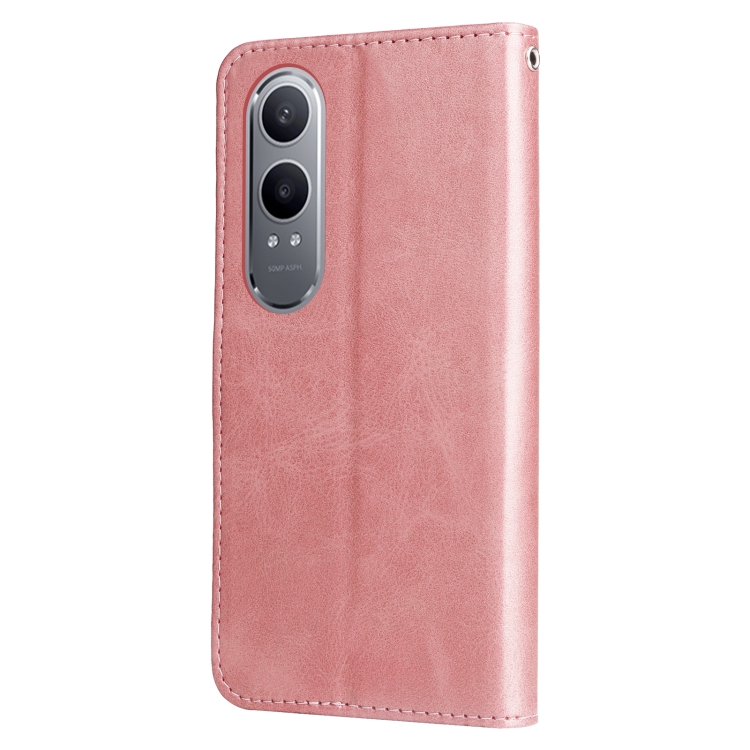 Para Oppo K12X Funda para Teléfono de Cuero con Cremallera y Textura de Becerro a la Moda (Oro Rosa)