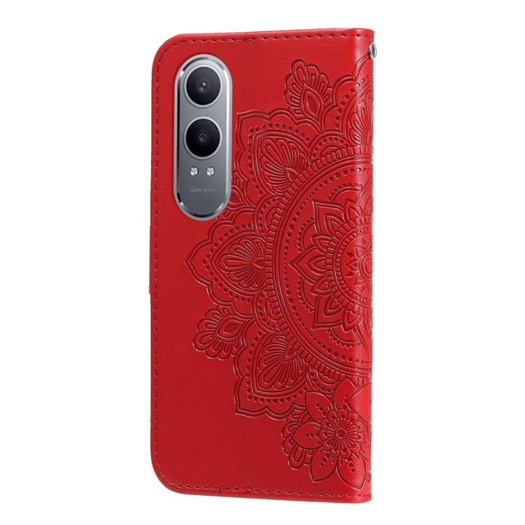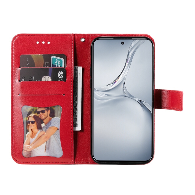 Para Oppo K12X Funda para Teléfono de Cuero con Estampado de Flores de Siete Pétalos (Rojo)