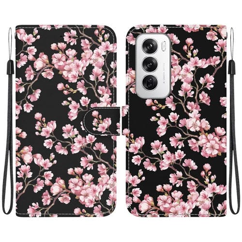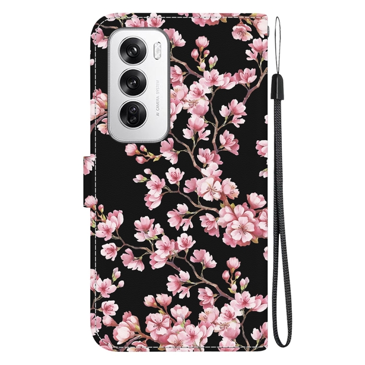 Para Oppo Reno 12 5G Funda de Teléfono de Cuero con Dibujo Coloreado con Textura de Cristal Global (Flor de Ciruelo)