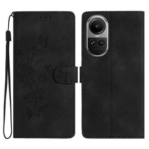 Para Oppo Reno10 5G / Reno10 Pro 5G Funda de Cuero para Teléfono con Patrón de Estampado de Mariposa y Flor Global (Negro)