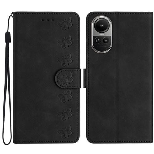 Para Oppo Reno10 5G / Reno10 Pro 5G Global Seven Butterflies Funda de Cuero para Teléfono En Relieve (Negro)