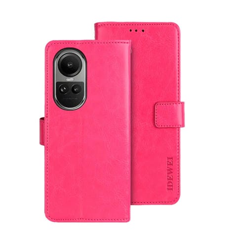 Para Oppo Reno10 / Reno10 Pro Global Idewei Crazy Horse Texture Funda de Cuero para Teléfono con Soporte (Rojo Rosa)