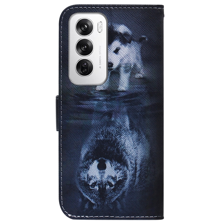Para Oppo Reno12 5G Funda de Cuero con Tapa para Teléfono con Dibujo Coloreado Global (Lobo y Perro)