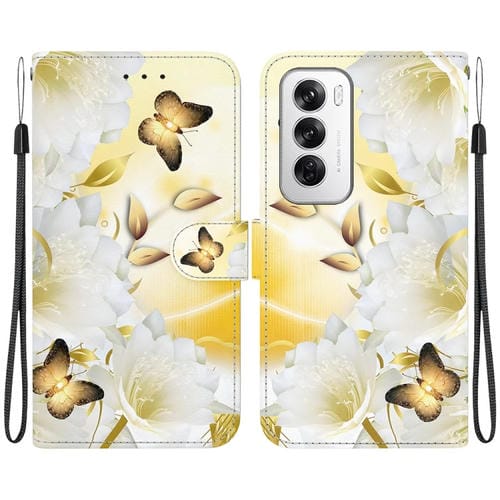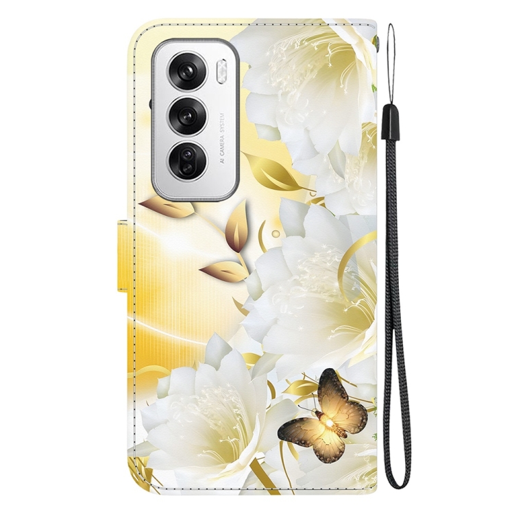 Para Oppo Reno12 5G Funda de Teléfono de Cuero con Dibujo Coloreado con Textura de Cristal Global (Epiphyllum de Mariposa Dorada)