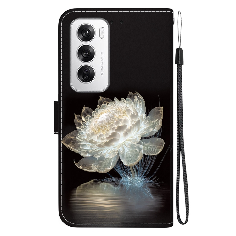 Para Oppo Reno12 5G Funda de Teléfono de Cuero con Dibujo Coloreado con Textura de Cristal Global (Peonía de Cristal)