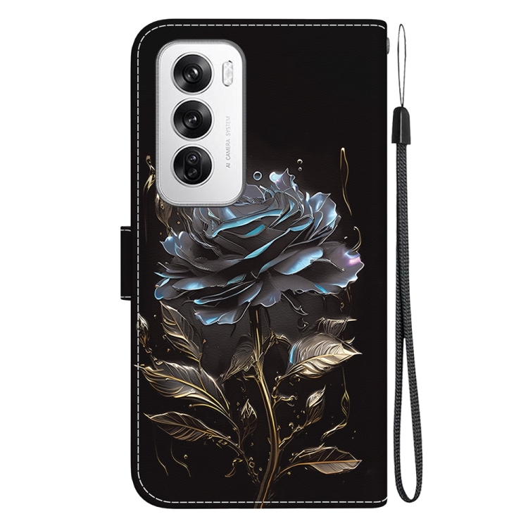 Para Oppo Reno12 5G Funda de Teléfono de Cuero con Dibujo Coloreado con Textura de Cristal Global (Rosa Negra)