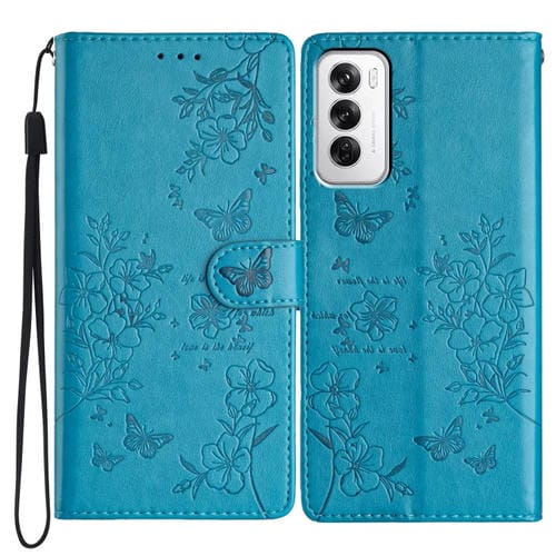Para Oppo Reno12 5G Global Butterfly Love Flower Funda de Cuero para Teléfono En Relieve (Azul)