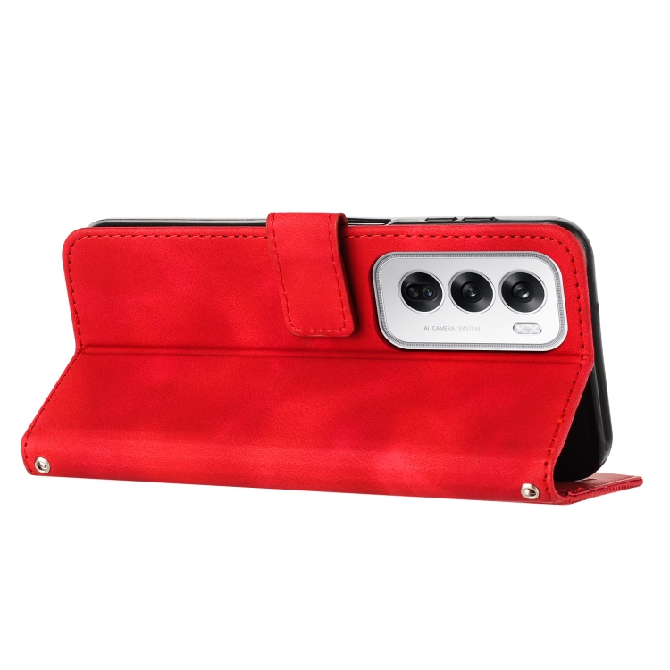 Para Oppo Reno12 5G Global Dream Triangle Funda de Cuero para Teléfono con Cordón (Rojo)