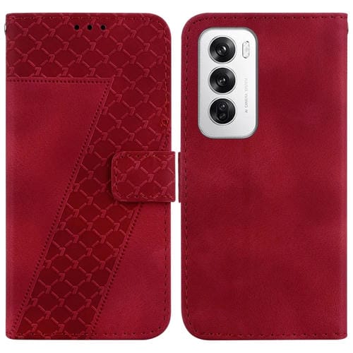 Para Oppo Reno12 5G Global Funda de Cuero En Relieve con Forma de 7 (Rojo)