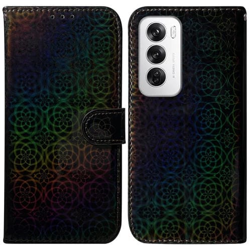 Para Oppo Reno12 5G Global Funda de Teléfono de Cuero con Hebilla Magnética Colorida (Negro)