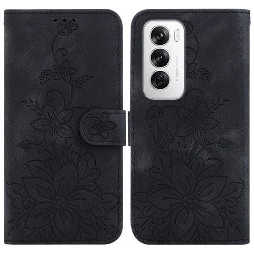 Para Oppo Reno12 5G Global Lily Funda de Cuero para Teléfono En Relieve (Negro)