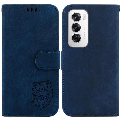Para Oppo Reno12 5G Global Little Tiger Funda de Cuero para Teléfono En Relieve (Azul Oscuro)