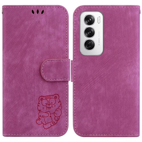 Para Oppo Reno12 5G Global Little Tiger Funda de Cuero para Teléfono En Relieve (Rojo Rosa)